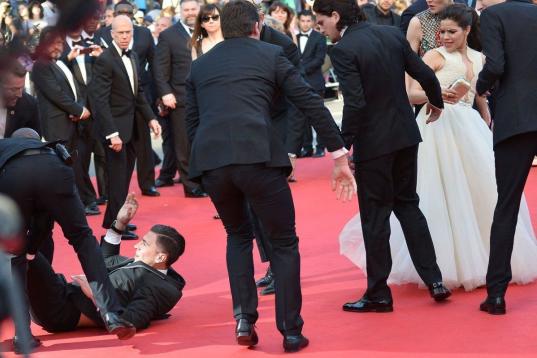 Un hombre burló este viernes las medidas de seguridad del Festival de Cine de Cannes y se coló bajo el vestido de la actriz América Ferrera, que en ese momento posaba en la alfombra roja.