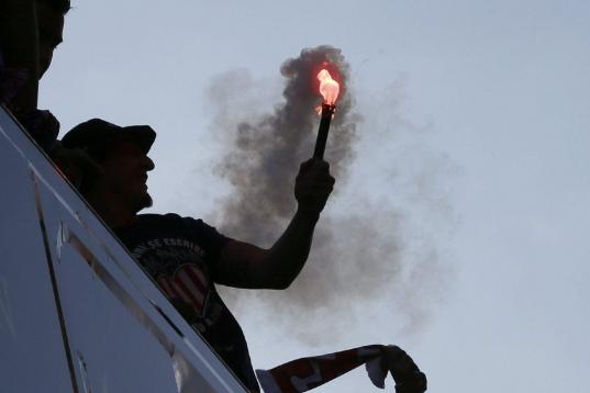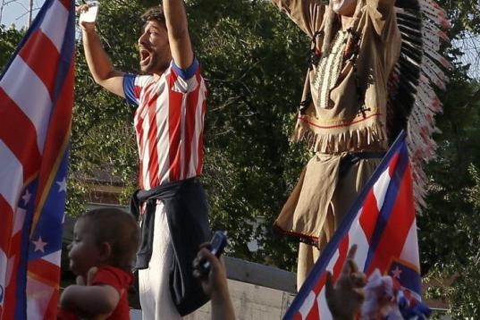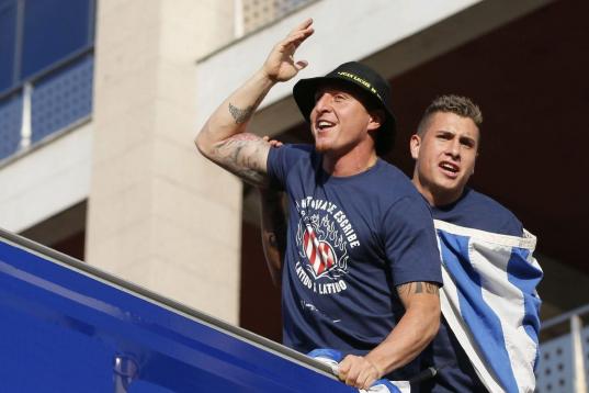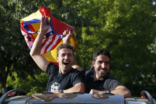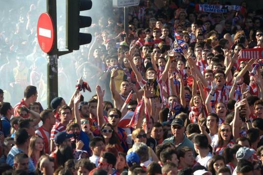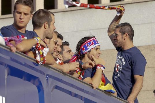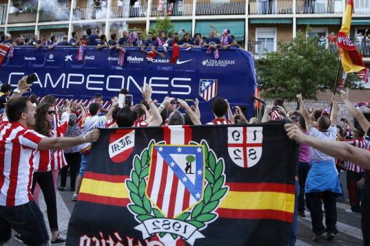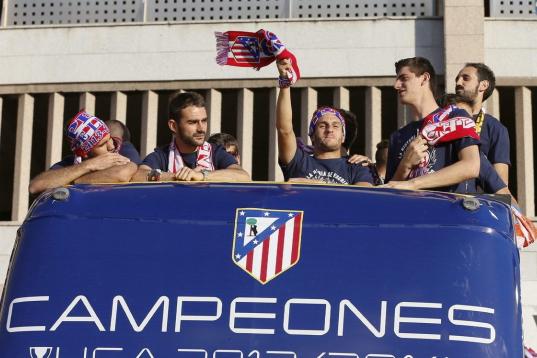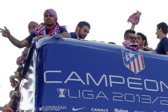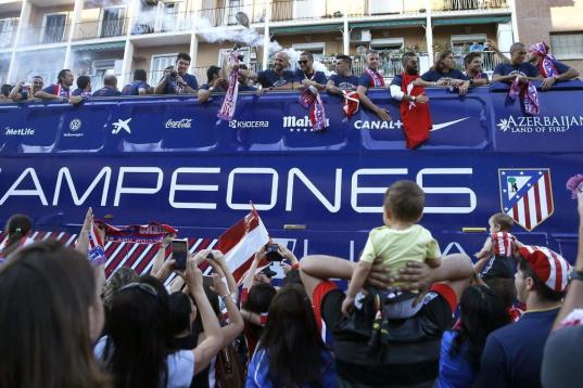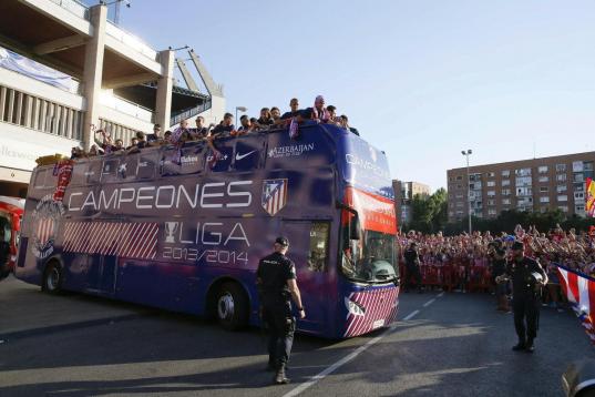 El Atlético de Madrid ha celebrado este domingo su victoria en la Liga con un recorrido en autobús por las calles de Madrid, desde el estadio Vicente Calderón hasta la fuente de Neptuno.