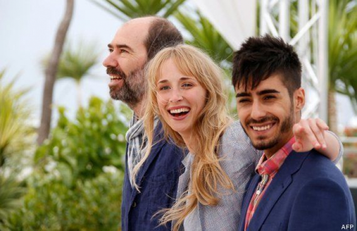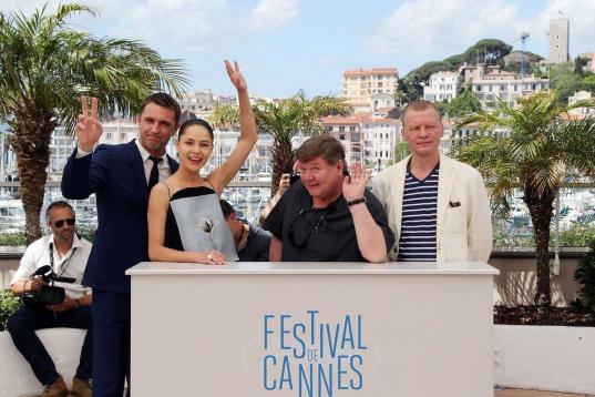 Los dos protagonistas de The Captive con su director, durante el 67º Festival de Cine de Cannes.
