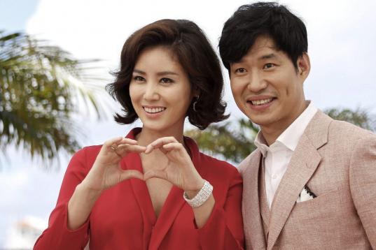 La actriz y su novio, en la presentación de La desaparición de Eleanor Rigby, en la 67 edición del Festival de Cine de Cannes.