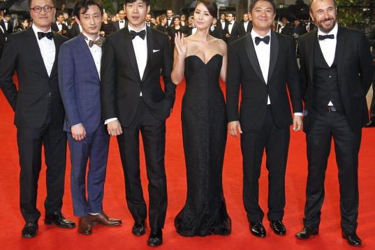 Posan en la presentación de The Captive en el 67º Festival de Cine de Cannes.