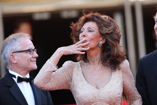 La veterana actriz italiana visitó un diseño de Giorgio Armani durante la presentación de La Voce Umana.