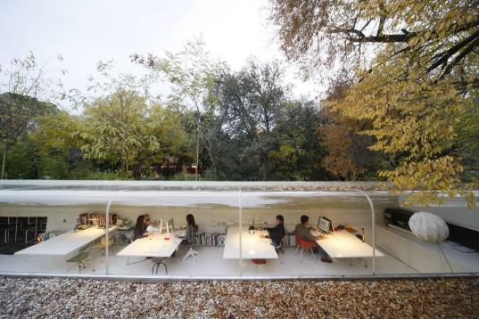 Se trata del estudio de los arquitectos Selgas Cano, situado a las afueras de Madrid, cerca de Pozuelo de Alarcón. "No está muy lejos de la ciudad pero lo suficiente para estar rodeado de naturaleza y tranquilidad", nos explican sus dueños, los arquitectos José Selgas y Lucía Cano, vía email.