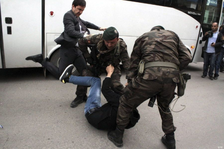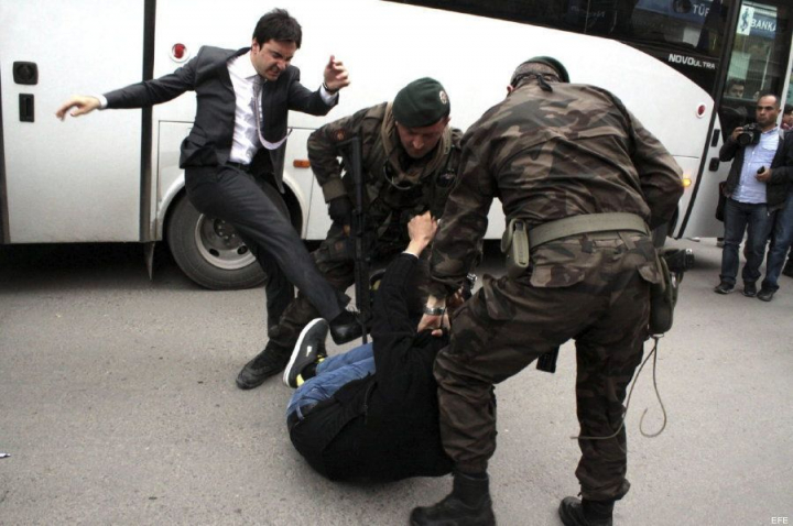 El asesor del primer ministro turco, Recep Tayyip Erdogan, que propinó varias patadas a un manifestante que protestaba por la gestión del accidente de la mina de carbón de Soma, Ysuf Yerkel, ha sido destituido de su cargo. En el derrumbe de la mina murieron 301 personas.