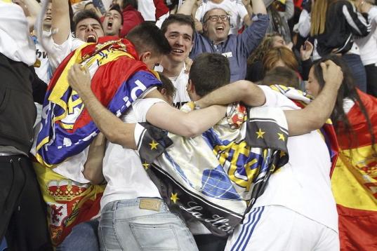 Miles de aficionados fueron llegando desde el final del partido en la capital portuguesa a Cibeles para esperar más de siete horas la llegada de sus ídolos. Ni el frío ni la espera movieron a los aficionados que se dieron cita no solo en la plaza madrileña sino en todas las calles aledañas.