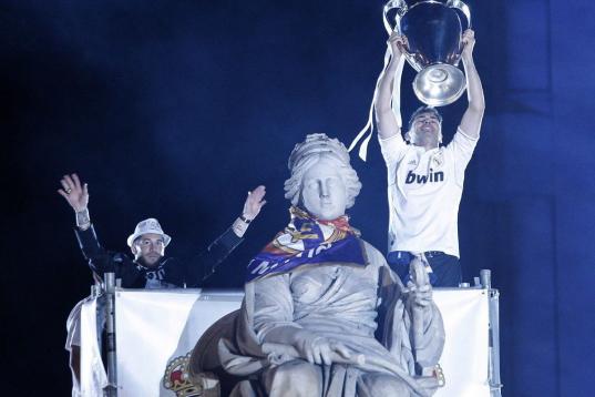 Los capitanes del Real Madrid Iker Casillas y Sergio Ramos coronaron a la diosa Cibeles con el domingo a punto de amanecer para desatar la euforia de miles y miles de aficionados que se congregaron en los alrededores de la plaza madrileña, punto neurálgico de las celebraciones blancas que vivió la más ansiada de ellas con el ofrecimiento de la décima Copa de Europa.
