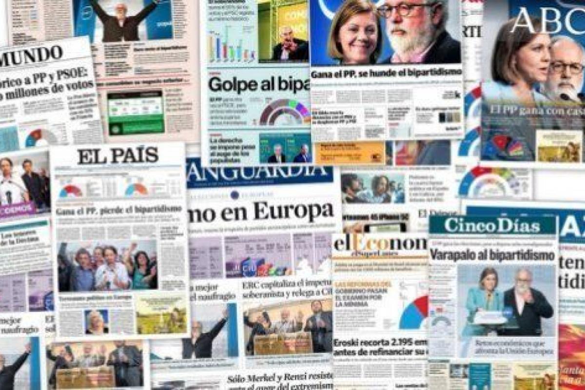 Los medios impresos coinciden este lunes en una idea: las elecciones europeas celebradas ayer representan en España una paletada sobre la tumba del bipartidismo.