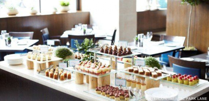 Hay que invertir varias horas para degustar el buffet del Cookbook Cafe en el hotel InterContinental Park Lane de Londres. Es eminentemente universal: cuscús, sashimi y salmón escocés pueden compartir plato. También destaca por sus postres. Cuesta cincuenta libras (sesenta y dos euros), pero ¿cuántas veces se puede desayunar-comer en pleno Hyde Park sin recurrir al picnic?