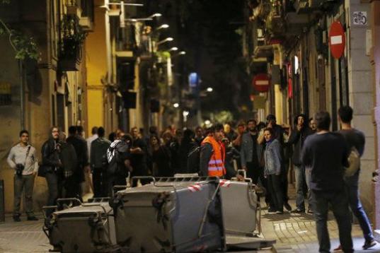 Mientras que la ciudad se llena de 'modernos' rumbo al festival de música independiente Primavera Sound que se celebra esta semana en Barcelona, el barrio de Sants parece una zona de guerra.