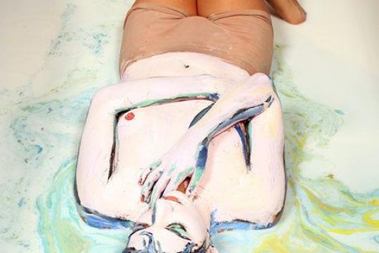 Más tarde introdujo a una de sus modelos en una bañera llena de leche… el resultado es espectacular.