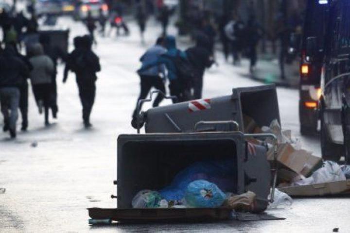 En su primera rueda de prensa tras el desalojo y cuatro noches de disturbios en Sants, saldadas hasta ahora con 61 detenidos -23 de ellos la última noche- y con daños valorados en casi 200.000 euros, decenas de contenedores quemados y las sucursales bancarias de la zona destrozadas, el colectivo ha culpado del conflicto al concejal del distrito, Jordi Martí, y al alcalde, Xavier Trias.