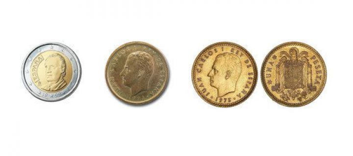 La primera vez que apareció la cara de Juan Carlos I en las monedas fue en 1975 en las pesetas, que dejaron de emitirse en el año 2001. Entonces el rey no apareció solo, sino que su perfil estaba acompañado por el de la reina Sofía.