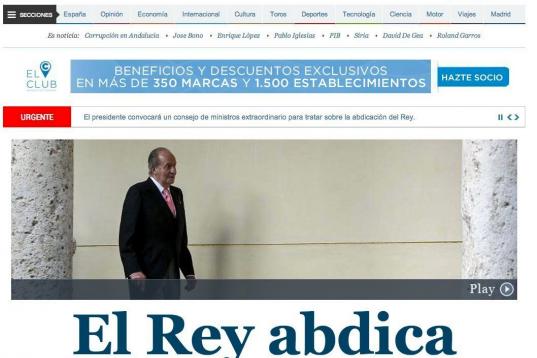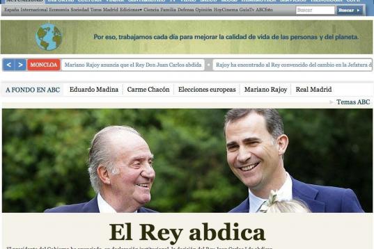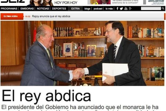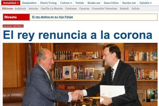 El rey Juan Carlos I ha anunciado su abdicación a través del presidente del Gobierno, Mariano Rajoy.