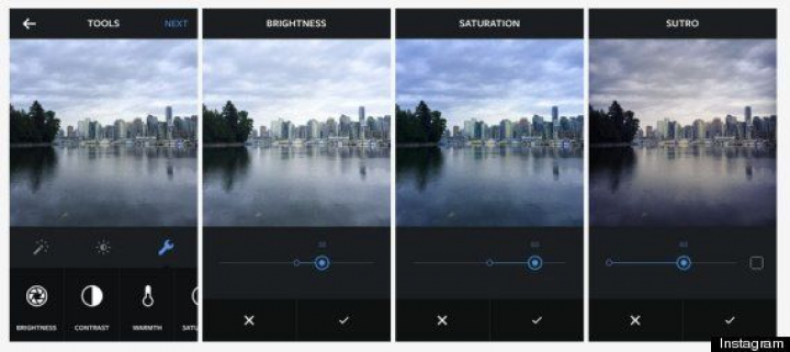 La nueva interfaz de Instagram, el modo de interactuar con la aplicación, más sencilla. Los filtros están abajo y el resto de herramientas arriba. Incorpora tres pequeños iconos en la parte superior: el de los filtros , el que permite tocar la luminosidad y un tercero y nuevo: una llave inglesa que da acceso a 10 nuevas características, que hacen que Instagram tenga un toque más profesional, más cercano a las cámaras de fotos digitales o a los programas de retoque profesionales.