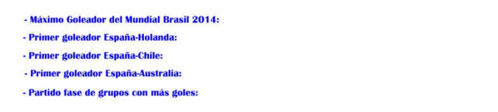 Para que la labor no te resulte demasiado complicada, en El Huffington Post hemos decidido facilitarte el cuadro que deberás rellenar tú y tus amigos con los resultados de cada encuentro. Por cada marcador que aciertes deberás sumar un punto en el tuyo propia. El participante que se acerque más a 64 (total de partidos) ganaría la porra. Para evitar empates estaría bien incorporar una serie de preguntas para poder romperlo en caso de producirse. Después del cuadro tienes una lista de sugerencias.