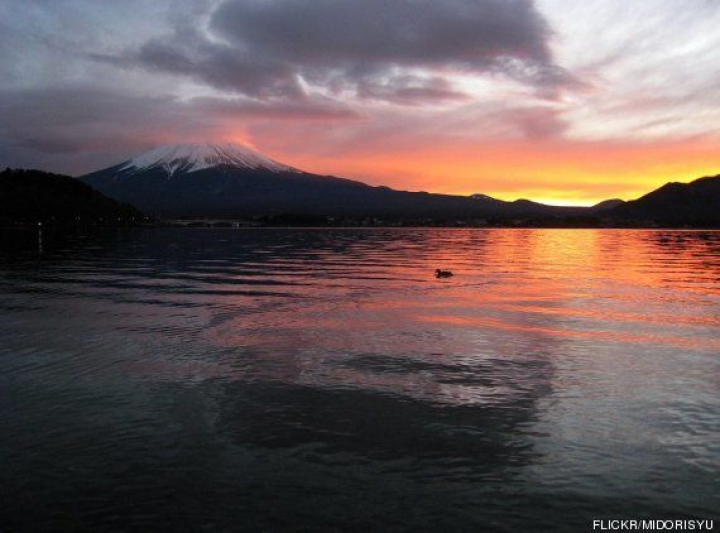 Atardecer en el Monte Fuji desde el lago Kawaguchi. Una foto de Flickr de Midorisyu: