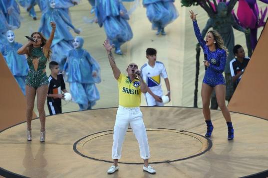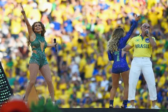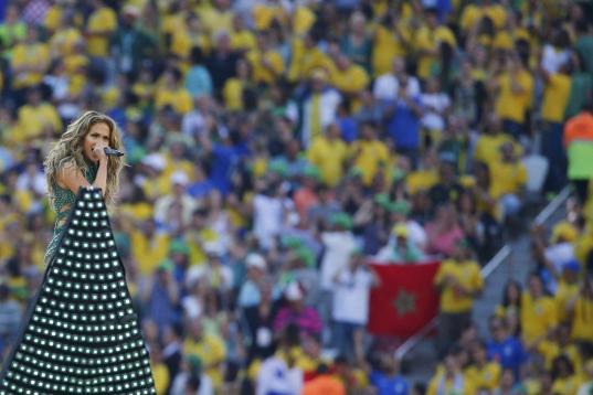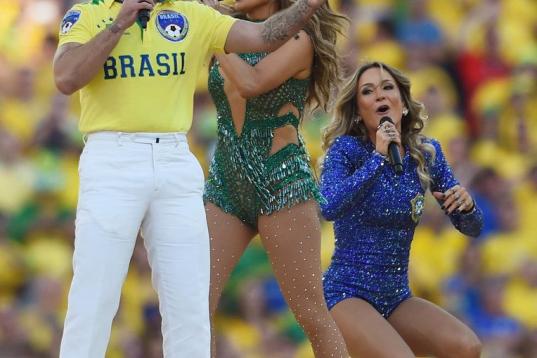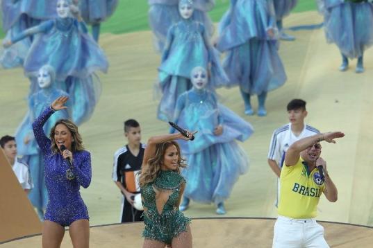 La ceremonia de inauguración del Mundial de Brasil 2014 discurría tranquila hasta que Jennifer Lopez y Claudia Leitte entraron en escena. Las dos artistas, acompañadas del rapero Pitbull, pusieron en pie al público del estadio Arena de Sao Paolo cuando interpretaron la canción We are one (Ole Ola), himno de la ceremonia.