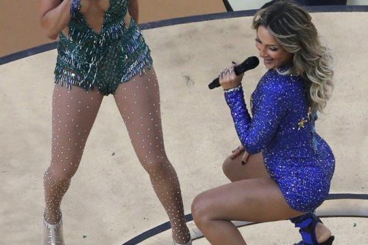 El trío musical hizo con su atuendo un guiño al país anfitrión al vestir de verde, azul y amarillo. Él, ataviado con pantalón blanco y la camiseta de la selección brasileña y ellas con sendos bodys, la brasileña de azul y la neoyorquina con un diseño verde de Charbel Zoe Couture. JLo no decepcionó y además de pierna enseñó escote.