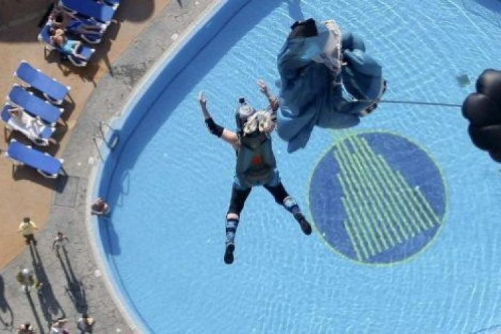 Dos paracaidistas resultaron heridos este viernes al golpearse contra un edificio durante la celebración en Benidorm (Alicante) de la séptima edición del concurso de salto base desde el Hotel Bali, según ha informado en un comunicado la organización del evento.