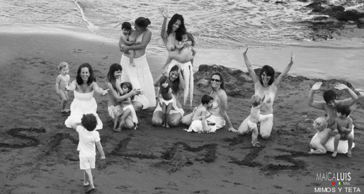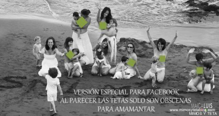 La madre y bloguera Nohemí Hervada publicó una imagen de varias madres en la playa dando el pecho a sus hijos. Pero Facebook censuró la foto, y Hervada (autora del blog Mimos y Teta) decidió hacer una versión más tapada para la red.