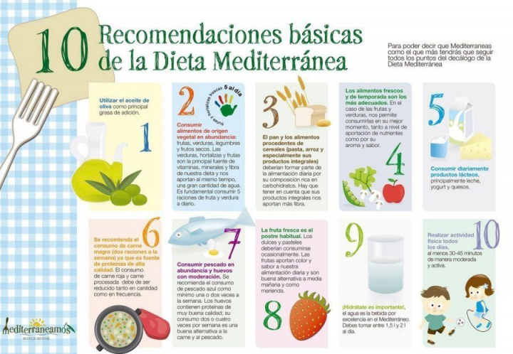 El Ministerio de Agricultura, Alimentación y Medio Ambiente, a través de la campaña Mediterraneamos, quiere resolvernos estas dudas y para ello ha difundido el decálogo definitivo de la dieta mediterránea. Porque no solo es necesario comer fruta y verdura, hacen falta otras cosas más. Desde consumir de 3 a 4 raciones diarias de lácteos hasta cocinar con aceite de oliva.