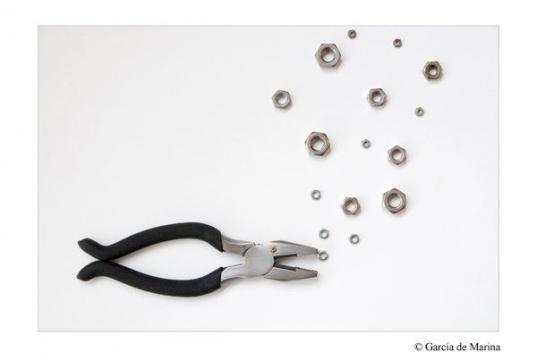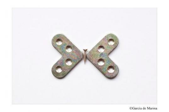 Un tenedor que simula la mano de Cristo durante la crucifixión, un sacapuntas como creador de literatura o la palabra ‘ojo’ hecha con la montura de unas gafas son algunas de las ideas que desprenden sus fotos. “Mi intención es transformar los objetos cotidianos y darles nuevas identidades, reinventarlos”, asegura De Marina a El Huffington Post.