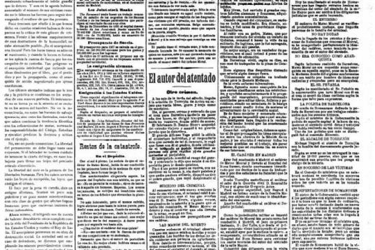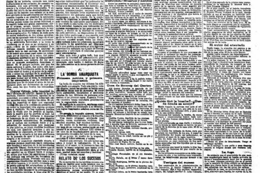 El Imparcial no ahorra detalles en la crónica de los sucesos. “Hubo unos segundos de estupor. Aquella terrible máquina descendió rápidamente, rodeada por una especie de humareda que cegó a los curiosos y al estallar, esparciendo la muerte con bárbara violencia, el terror se apoderó de todos”. Cundió el pánico. “Los hombres, demudados, gritando roncos, se abrían paso a empujones”. Las señoras “dando agudos gritos, con sus hijos entre los brazos unas, otras cogidas a sus esposos, que procuraban ampararla”.