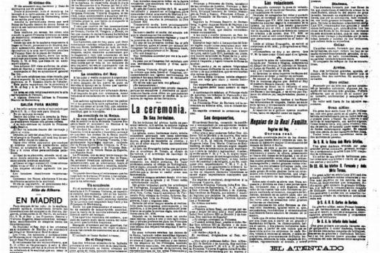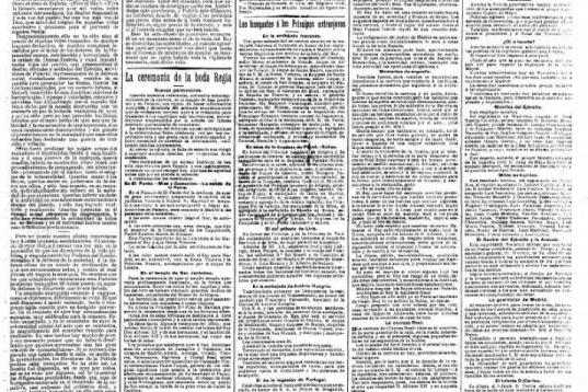 Lucía “un sol espléndido” y las calles de Madrid estaban engalanadas de la forma reservada a los acontecimientos históricos: banderolas, cintas, guirnaldas, flores y gargantas afinadas para gritar el '¡Viva los reyes!' de rigor, según recogen los periódicos de la época. No era para menos: esa mañana, el rey Alfonso XIII y la británica Victoria Eugenia de Battenberg contraían matrimonio en la iglesia de los Jerónimos de Madrid.