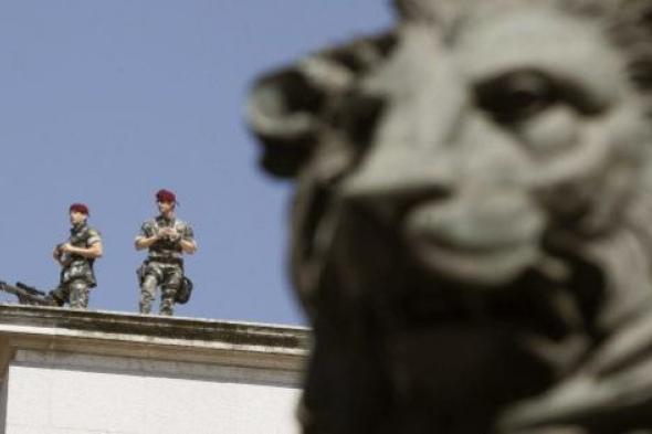 Un miembro del los GEO vigila desde la azotea del Congreso.