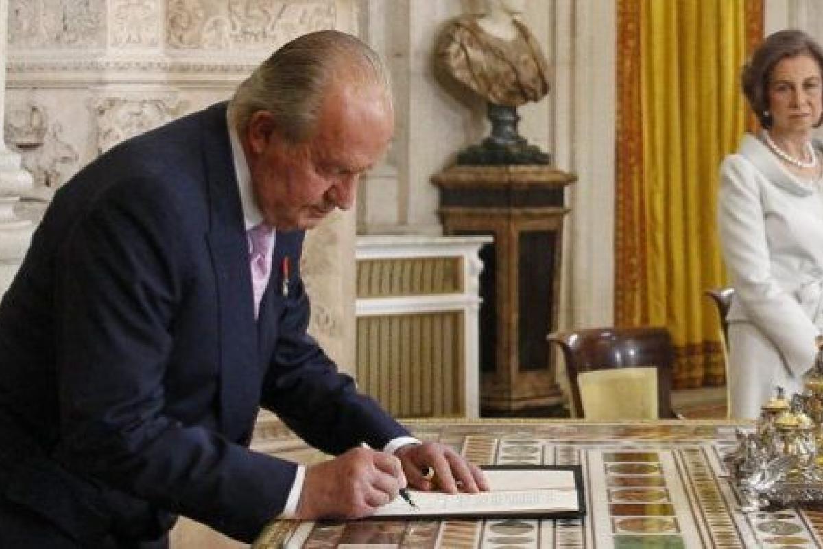 La abdicación del rey Juan Carlos ha dejado una imagen para la historia, la sanción del monarca de la ley con la que deja el trono.