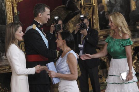 Los secretarios de Estado se han sentado junto al alborotado gallinero de la prensa. Mientras, Cándido Méndez (UGT) se lo pasaba en grande gastando bromas a Joan Rosell, el presidente de la CEOE. Pau Gasol pegaba a duras penas junto a tanto político y, para colmo, lo han sentado con Froilán, el revoltoso hijo de la infanta Elena, a quien miraba con extrañeza. Esperanza Aguirre ha saludado como una reina. La futura reina, la princesa Leonor, mantenía las formas mientras la infanta Sofía sonreía y levantaba las piernas (bajo la por veces amenazante mirada de la reina Letizia).