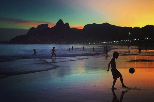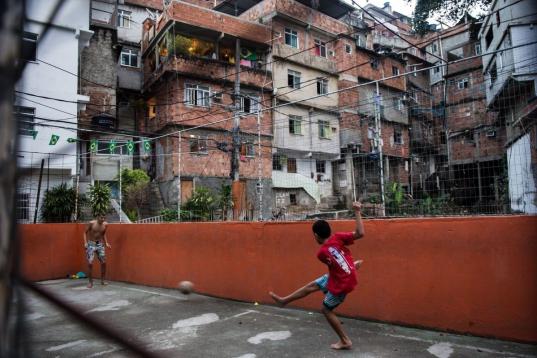Niños juegan al fútbol en Rio de Janeiro. (YASUYOSHI CHIBA/AFP/Getty Images)