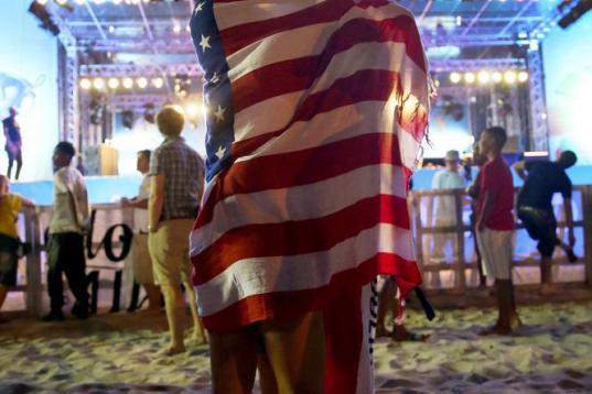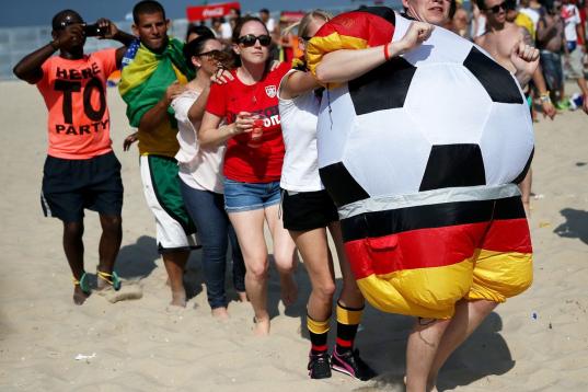 Aficionados, en una playa antes del Alemania-Portugak (Photo by Joe Raedle/Getty Images)