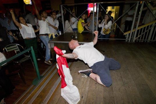 Un aficionado inglés celebra un gol en Londres (JUSTIN TALLIS/AFP/Getty Images)