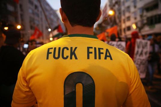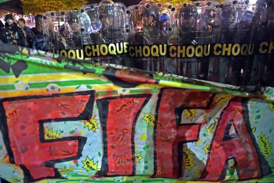 Policía controla una manifestación contra el Mundial (Photo by Mario Tama/Getty Images)