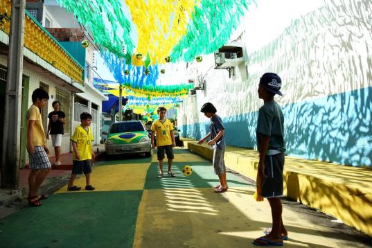 Los niños juegan al fútbol en una calle de Brasil (Photo by Warren Little/Getty Images)