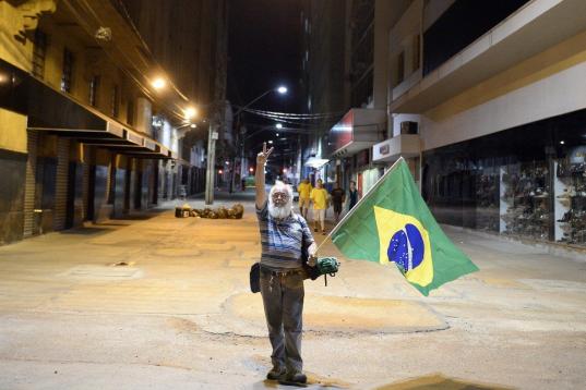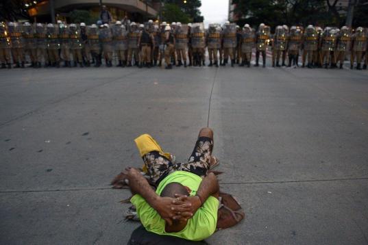 Un manifestante, ante la policía brasileña (JUAN MABROMATA/AFP/Getty Images)