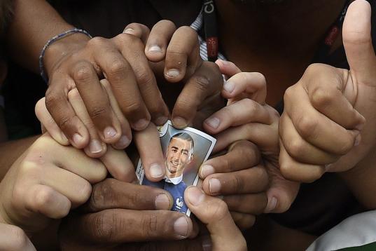 Aficionados brasileños, con un cromo de Benzema (FRANCK FIFE/AFP/Getty Images)