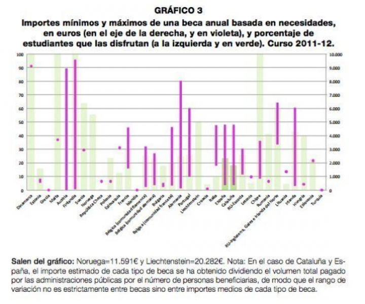 En otros países, según el mismo documento, los estudios de grado cuestan entre unas pocas decenas de euros hasta un máximo de mil euros por curso. Es el caso de República Checa, Polonia, Eslovaquia, Francia, Islandia, Bélgica, Bulgaria, Alemania y Portugal. Y, en todos los casos, existen sistemas de becas para los alumnos más brillantes o con menos recursos.