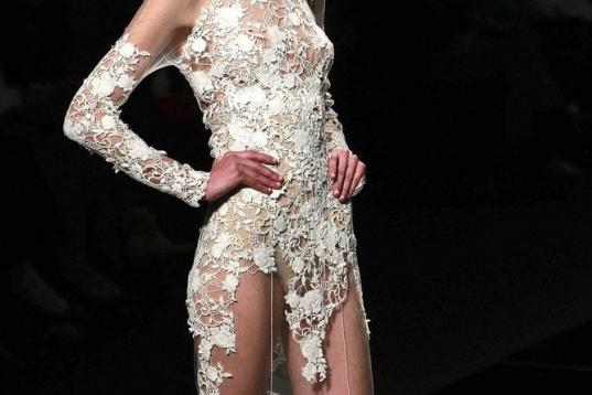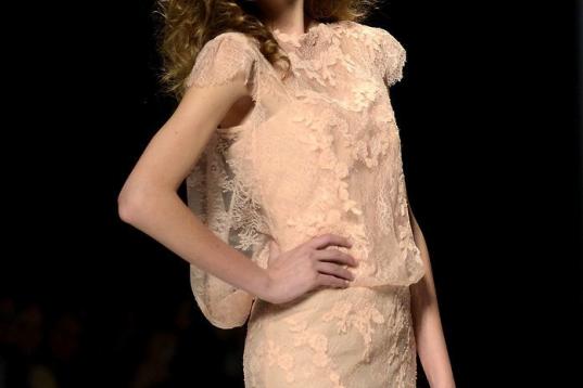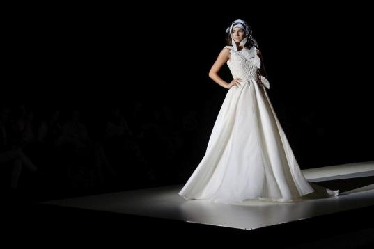 Un diseño de Hannibal Laguna en la pasarela de novias Barcelona Bridal Week 2014.