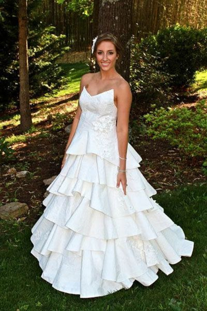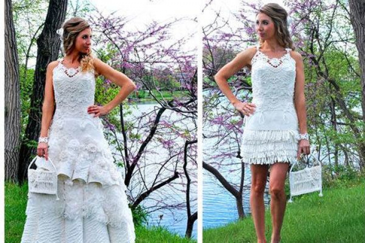 No todos los diseñadores utilizan bordados de encaje, pedrería o mikado para confeccionar sus vestidos de novia. Hay otros materiales más modestos que pueden aportar un toque de originalidad. En este caso, y aunque parezca una broma, la materia prima utilizada es el papel higiénico, y el resultado es sorprendente.