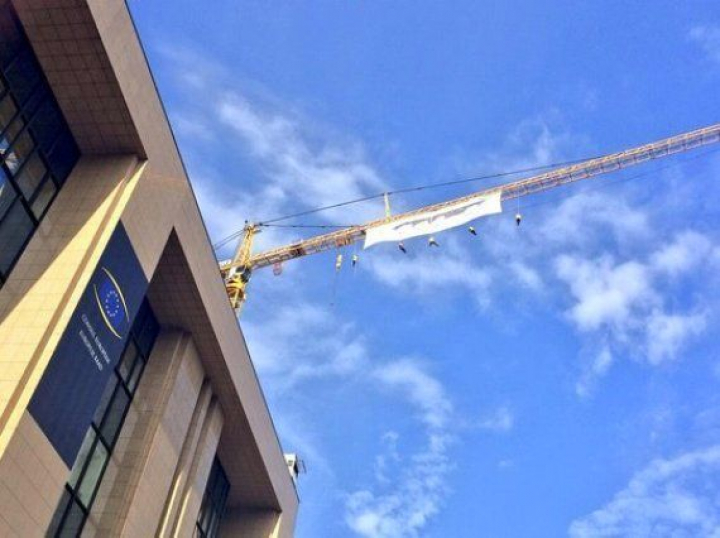Mientras, fuera, Greenpeace denuncia los planes energéticos de los 28 por considerar que están al servicio de las grandes compañías.