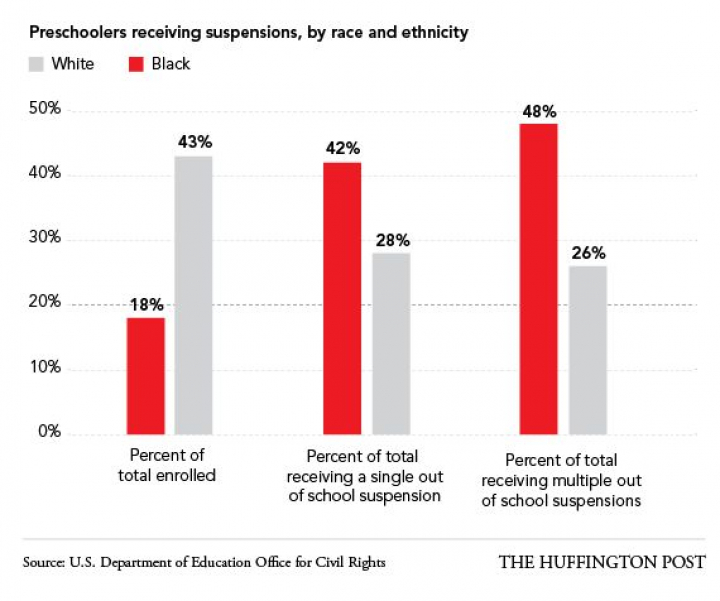 "Los niños negros representan un 18% de las matrículas en preescolar, pero un 42% han sido expulsados del colegio una vez y un 48% más de una vez", según un informe del Departamento de Educación, publicado en marzo.