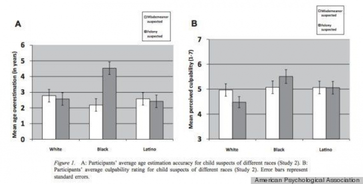 Cuando a los participantes se les decía que los niños, tanto los negros como los blancos, eran sospechosos de haber cometido algún crimen, la diferencia en la percepción de la edad y la inocencia era más dura.
