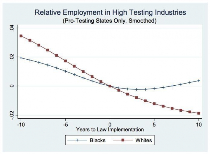 El uso de análisis de consumo de droga puede ayudar a corregir este hecho y aumentar las oportunidades de los solicitantes negros, según un estudio de la Oficina Nacional de Investigación Económica (National Bureau of Economic Research) de mayo.