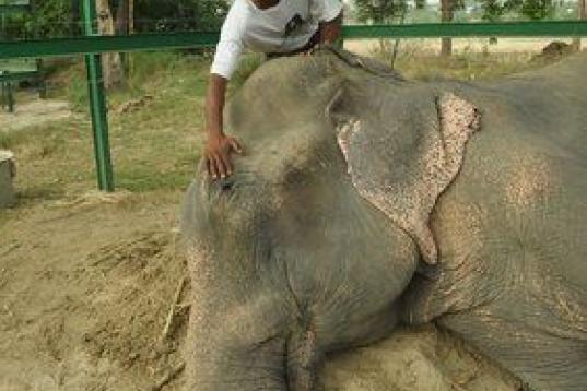 Wildlife SOS,, un grupo creado en 1995 para proteger las especies de La India en peligro, se dispuso a rescatar a Raju la noche del 2 de julio. Raju tiene unos 50 años; probablemente fue capturado cuando era un bebé y fue vendido varias veces a lo largo de su vida. Obligado a trabajar como un animal de espectáculo para recibir limosnas de la gente en Allahabad, le ataban las patas con cadenas de púas, que hacían que le resultase difícil andar y que le provocaron heridas crónicas. También le golpeaban.