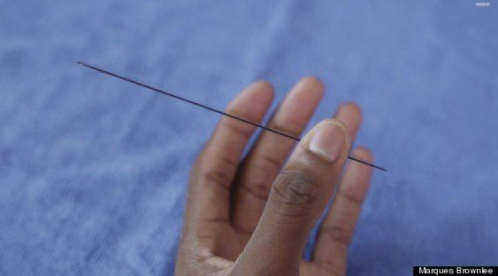 Estábamos bastante seguros de que la pantalla iba a ser más delgada, más flexible y más duradera que la versiones anteriores, pero Brownlee lo demuestra tratando de hacerle rasguños y rayaduras. Apuñala la pantalla con un cuchillo, la rasca con unas llaves y la dobla 90 grados, todo sin dañarla.