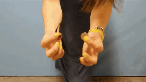 Primero, pon la moneda detrás de tu falda o tu vestido, como si la fueras a pasar desde atrás hacia delante. Luego, une la moneda tanto con la tela trasera de tu falda como con la delantera atándola con un coletero o una goma cualquiera. Avisamos de que el truco funciona mejor en vestidos y faldas largos, anchos y con tela. Abstenerse faldas muy cortas o estrechas.