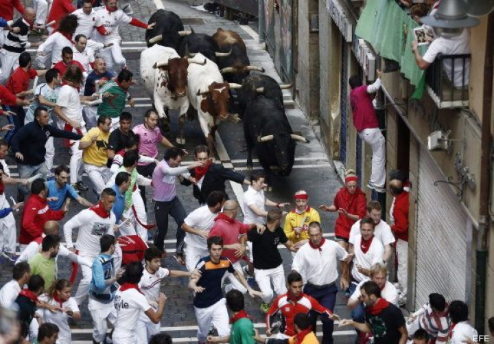 Las reses de la ganadería extremeña, ausentes desde el año 2010 de la feria del toro de Pamplona, han realizado un encierro rápido y emocionante que ha durado menos de dos minutos y medio. Además, han hecho el recorrido hasta la mitad de Estafeta muy unidos y rápidos, aunque uno de los morlacos se ha caído y ha quedado rezagado sin causar situaciones de especial peligro.