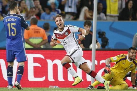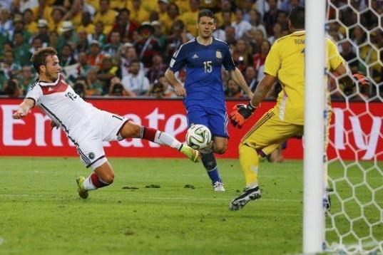 En la prórroga, Low decidió dar entrada a Gotze, un menudo mediapunta que se convirtió en el héroe de Alemania. Pero no fue hasta la segunda mitad de la prórroga, a la que se llegó tras varias ocasiones de ambos conjuntos, cuando Schurrle recorrió la banda izquierda y centró para Gotze, que controló con el pecho y, sin dejarla botar, remató con la zurda para hacer historia con Alemania.